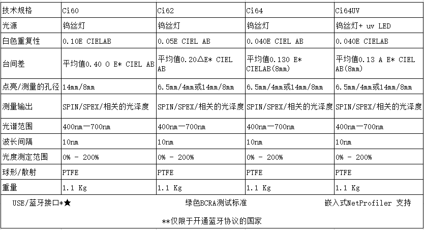愛色麗Ci6x系列分光測色儀技術參數(shù)表