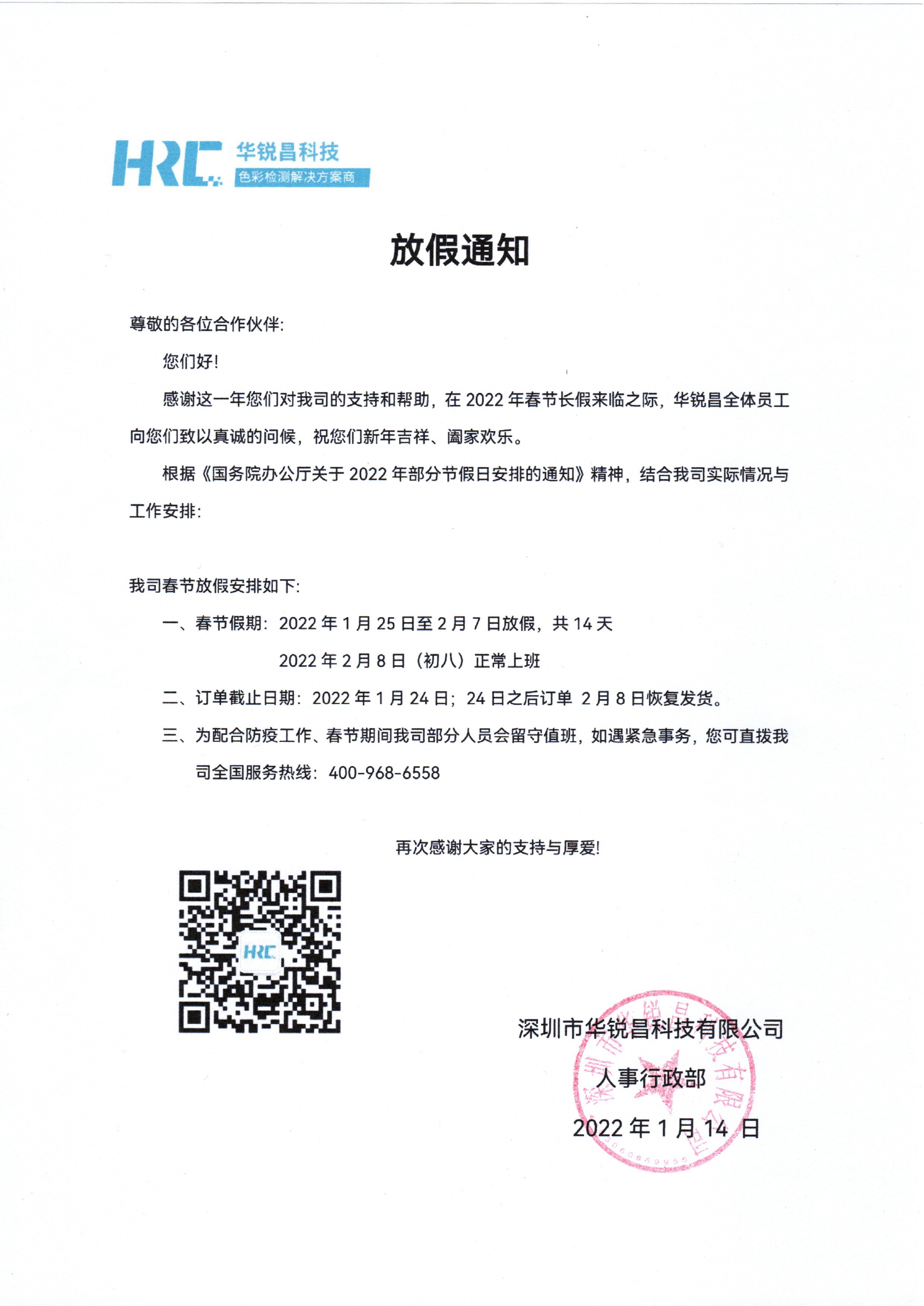 感謝這一年您們對我司的支持和幫助,在2022年春節長假來臨之際,華銳昌全體員工向您們致以真誠的問候,祝您們新年吉祥、闔家歡樂。